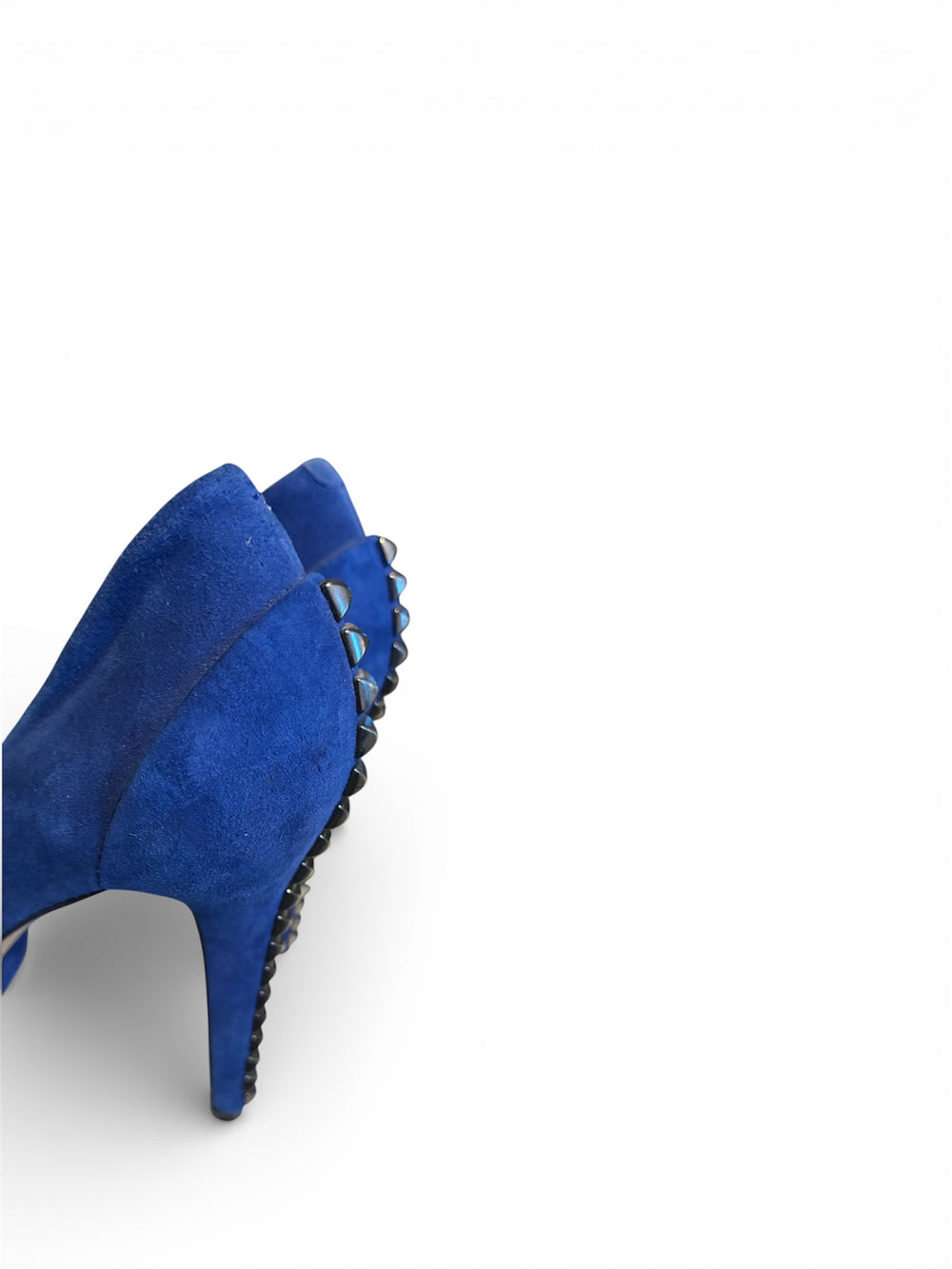 Vince Camuto stilettos and high-heeled pumps are well-known for their mix of modern aesthetics, affordability, and comfort, often incorporating pointed toes, slingback straps, and eye-catching hardware features. These royal blue stilettos are simply fabulous! With a dazzling silver studded heel, they are sure to turn heads! Previously owned and in fair condition. We classified them as fair because some of the inner material is fraying. The outside of the shoe is in great shape! Please take a look at the photos!