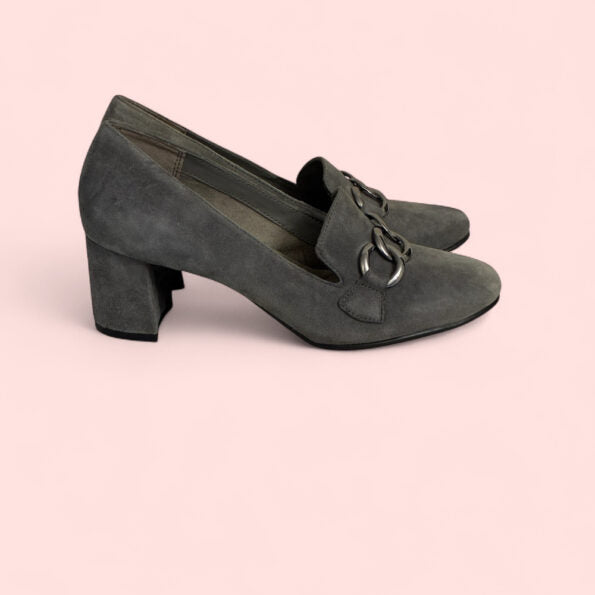 Experience unparalleled comfort with Aerosoles’ cutting-edge features—designed to support you with every step, from arch to heel. Discover your ideal balance with the Stitch ‘N Turn for flexibility, the Aero-Fly™ Insole for cushioning and breathability, the Diamond Flex Sole to reduce impact, and the Ortholite® Foam Insole for lightweight mobility. Relish in these ultra-cushioned shoes made of soft gray suede. They are easy to slip on. This shoe is new without tags.