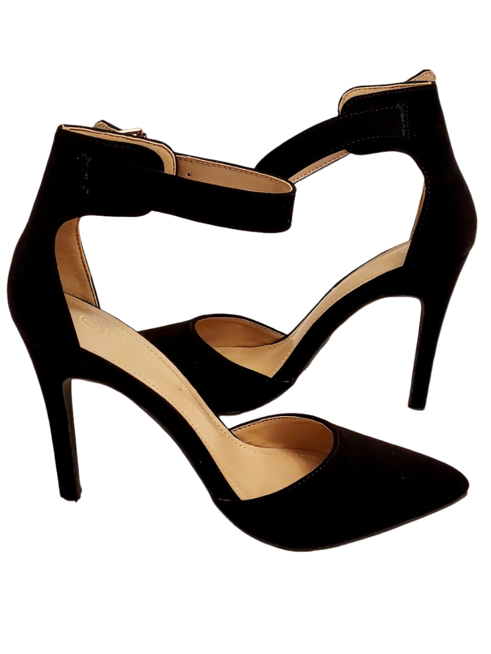 Expertly crafted by Dream Pairs, these stiletto heels exude a seductive allure. The bold black suede material adds a luxurious touch, while the ankle strap and buckle provide a secure fit. The pointed toe is the perfect finishing touch for dressing up any outfit. This shoe is in perfect, like-new condition.
