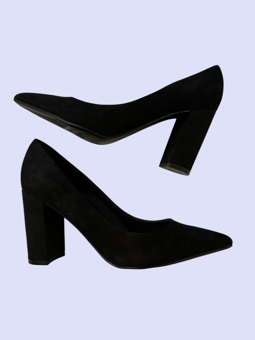 Revamp your closet with these elegant Marc Fisher dress pumps. Featuring a high block heel, fashionable pointy toe, and crafted from black suede, these shoes are perfect for any occasion! Although pre-owned, they are in fantastic shape with minimal marks that are barely noticeable. Please take a look at the photos for a closer inspection!